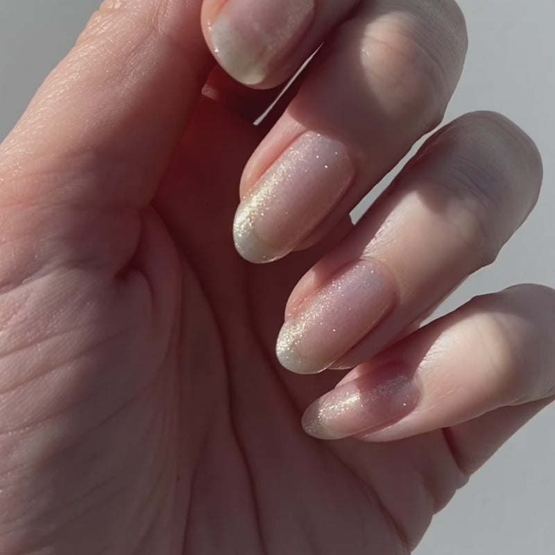 A white layering effect with a glistening gold sparkle.