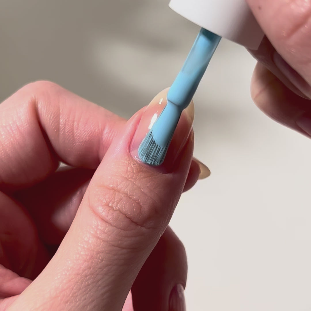 Step 2: Base Coat Apply two layers to each nail, allowing each coat to dry matte. If Base Coat is cloudy or jelly-like, stand the bottle in one inch of hot water until the product becomes clear. **Do not microwave or submerge in water.