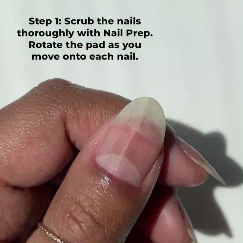Remove oils and lotions by scrubbing each nail with a lint-free pad soaked in Nail Prep.