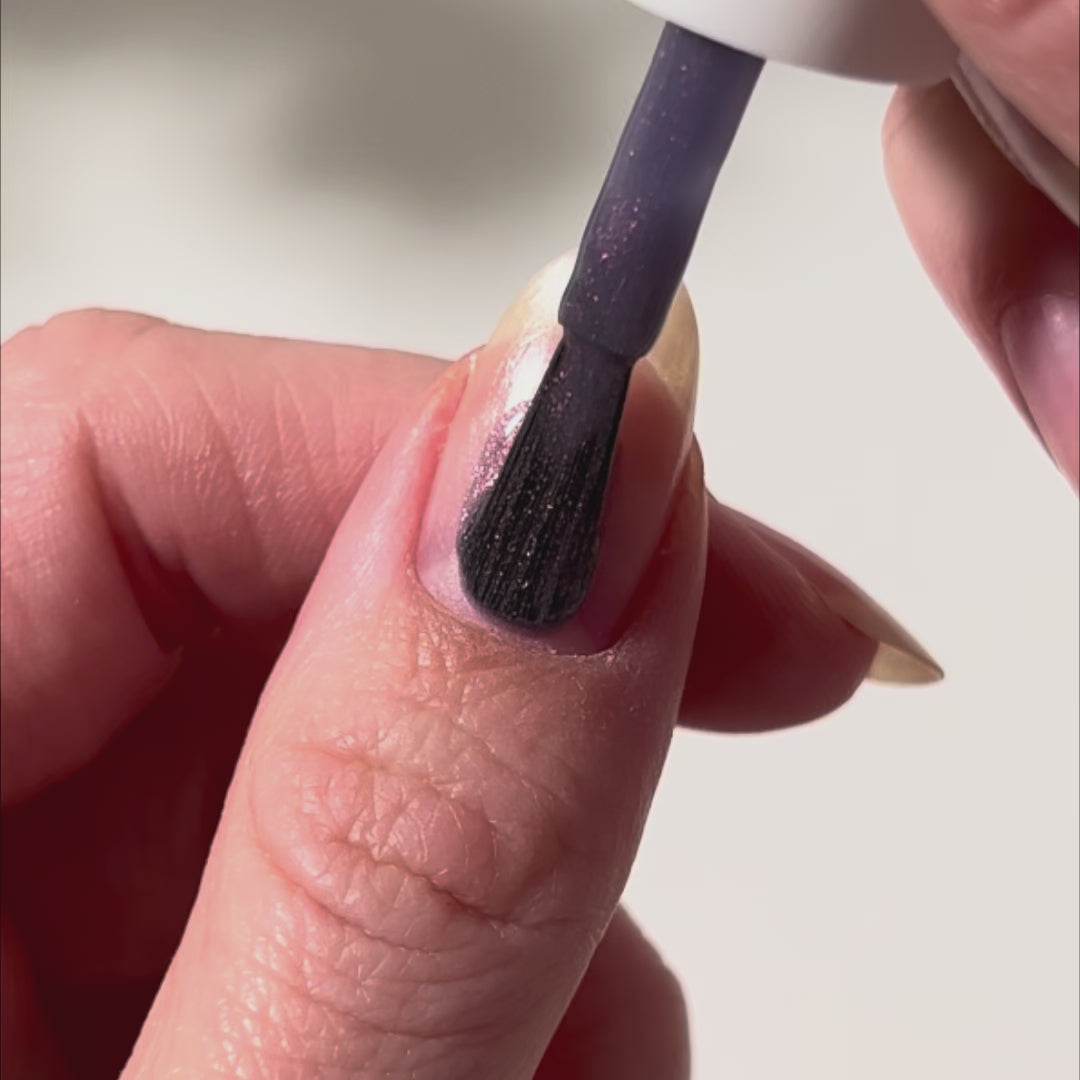 Butyl Acetate, Ethyl Acetate, Cellulose Acetate Butyrate, Isopropyl Alcohol, Dipropylene Glycol Dibenzoate, Stearalkonium Hectorite, Propyl Acetate, Calcium Sodium Borosilicate, SDA 40B, Synthetic Fluorphlogopite, Isobutanol, Pentaerythrityl Tetra-di-t-butyl Hydroxyhydrocinnamate, Octocrylene, Benzotriazolyl Dodecyl p-Cresol, Silica, Urea-Modified Polyamide, Sunflower Oil/Maleic Anhydride Copolymer, Stearalkonium Bentonite, Phenoxyethanol, Aqua (Water), Propylene Carbonate, Cyclohexasiloxane, Tin Oxide, Bis-PEG/PPG 20/20 Dimethicone, Tosylamide/Epoxy Resin, Polyisobutyl Methacrylate, Cyclopentasiloxane, Maleic Acid, Fragrance. May Contain: Blue 1, Ext. Violet 2, Titanium Dioxide, Red 6 Lake, Ferric Ferrocyanide.